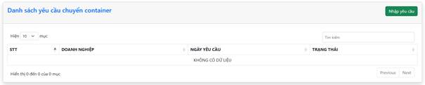 Doanh nghiệp chọn “Yêu cầu chuyển container” trong thanh điều hướng và chọn nút “Nhập yêu cầu”