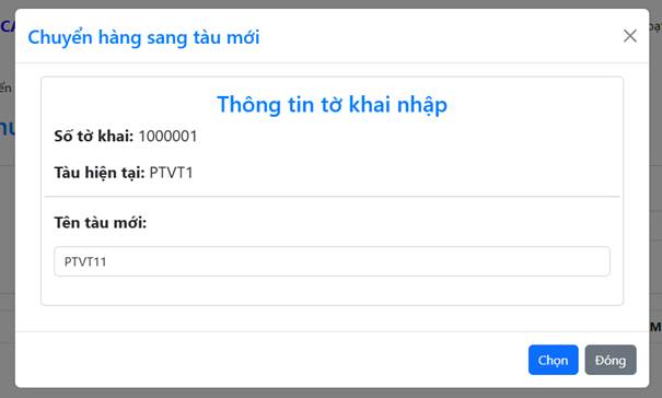 Cửa sổ mới sẽ hiện lên cho phép doanh nghiệp nhập tên tàu mới để chuyển hàng sang