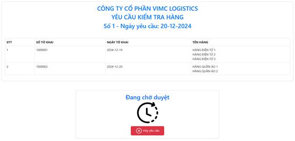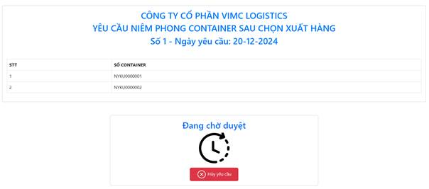 Yêu cầu niêm phong container mới thêm sẽ ở trạng thái đang chờ duyệt, doanh nghiệp có thể chọn “Hủy yêu cầu”
