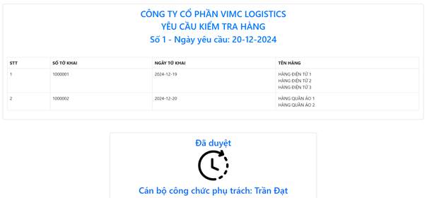 Sau khi được cán bộ công chức duyệt, doanh nghiệp có thể chọn nút “In phiếu yêu cầu” để in ra phiếu